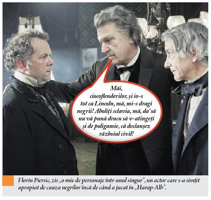 Se râde și la Lincoln chiar dacă-i un film istoric. M-am mirat că nu l-au distribuit pe Florin Piersic în rolul principal, din două motive: filmul a fost lansat în apropierea zilei de naștere a „ciocoflendărului”, iar al doilea motiv e că Abraham Lincoln avea un chef de povești la fel de mare ca Piersic. Nu se putea o interpretare mai realistă, dar Spielberg și-a dat seama că publicul internațional nu-l va putea scoate pe Mărgelatu din context și-o să transforme pelicula-ntr-un absurd Jurassic Parc.